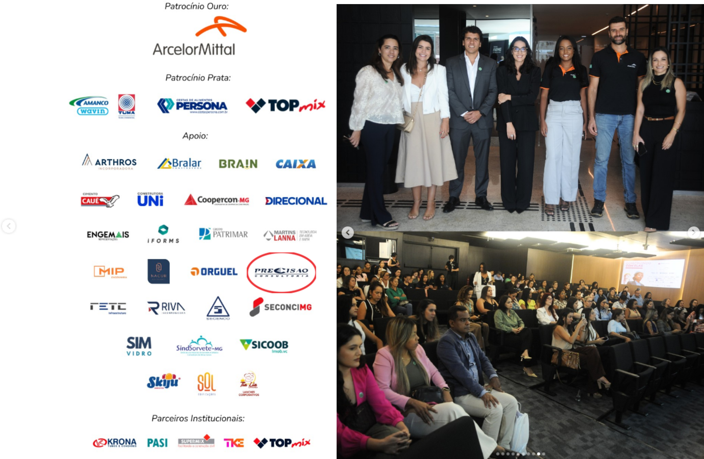 A Precisão Consultoria foi uma das patrocinadoras da 2ª edição do "Construindo Com Elas", em celebração ao Mês da Mulher, realizado pelo Sinduscon-MG, no dia 28 de março, que contou com a presença de mais de 130 mulheres, para aprendizado e troca de experiências na Construção Civil. Clique aqui e veja mais sobre o evento.